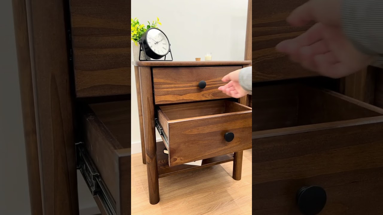 - Le table de chevet est intégralement fabriquée en pin massif coloris châtaignier