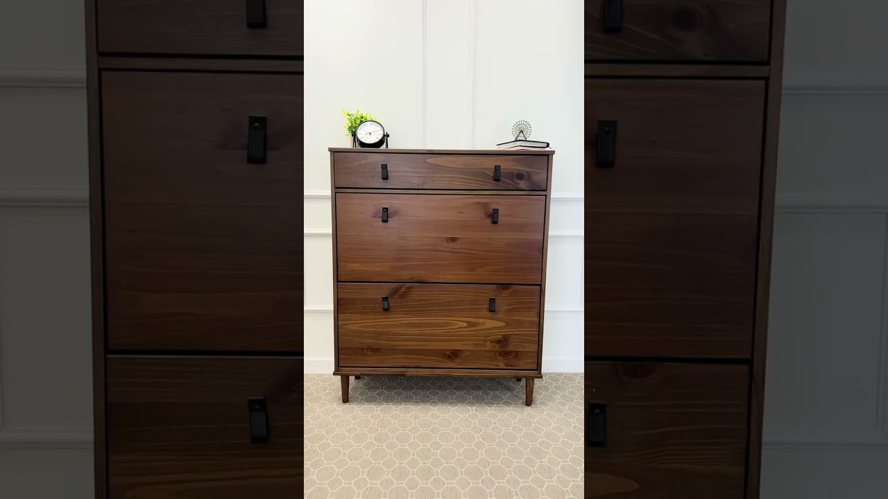 - Le meuble à chaussures est fabriqué en pin massif, lasuré brun foncé.